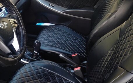 Hyundai Solaris I Рестайлинг 2015 года практичный седан с бензиновым двигателем объёмом 1,6 литра и мощностью 123 лошадиные силы. Автомобиль оснащён механической коробкой передач, что обеспечивает водителю полный контроль над маши...